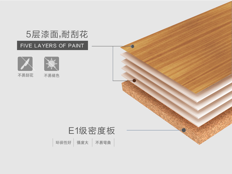 E1級密度板,5層漆面,耐刮花,不易褪色。